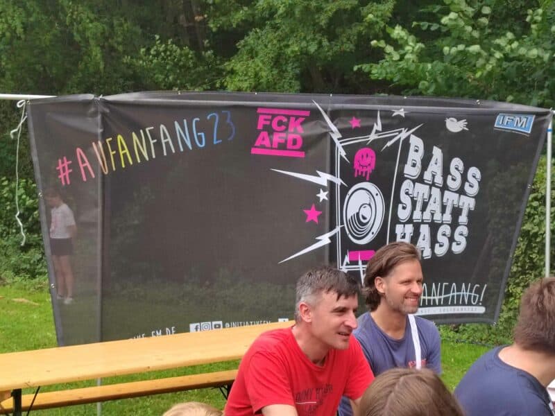 „Auf Anfang!“ ist nicht nur ein Musikfestival – es ist ein kultureller und prodemokratischer Leuchtturm im ländlichen Raum. Das Festival bietet neben Konzerten auch Kunst, Demokratiebildung, Ausstellungen und ein Mitmach-Kinderprogramm. Mit dabei sind u.a. Teachers for Future, die Mobile Beratung gegen Rechtsextremismus, SARAH-Seenotrettung, Omas gegen Rechts, Kreuznach für Vielfalt, Aktiv für Flüchtlinge und Omas for Future.